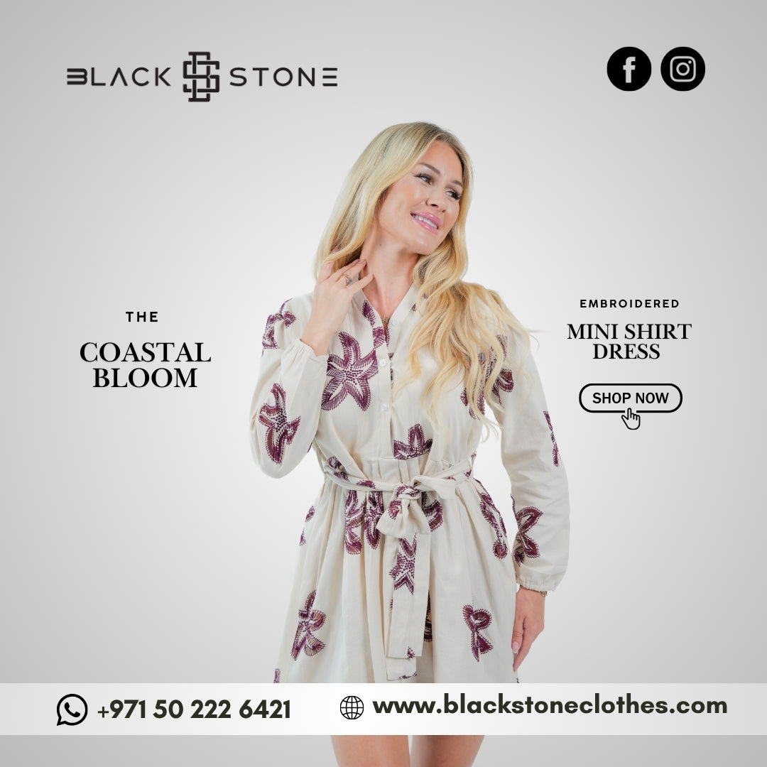 The "Coastal Bloom" Embroidered Mini Shirt Dress